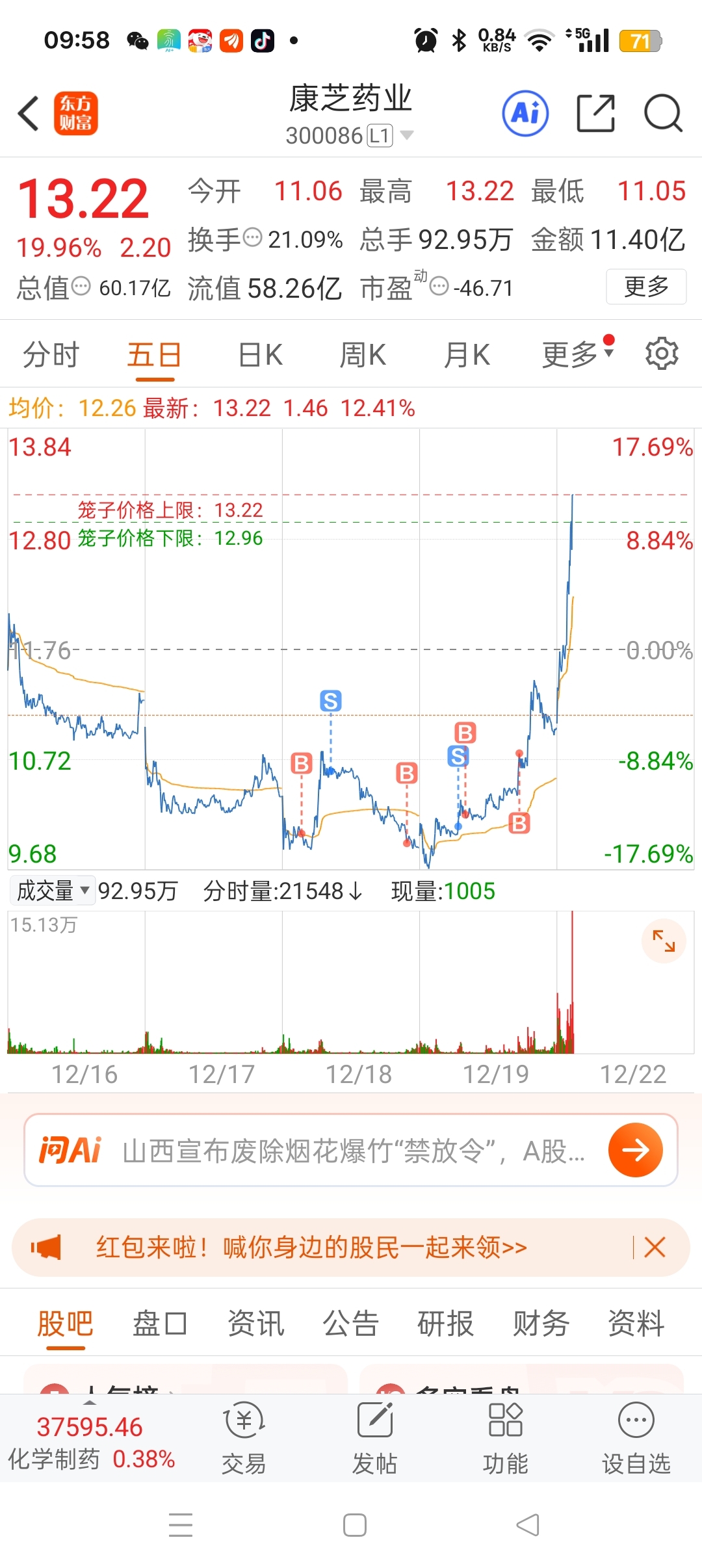 $康芝药业(SZ300086)$ 跟了一个月,终于等到与涨停大美女会面