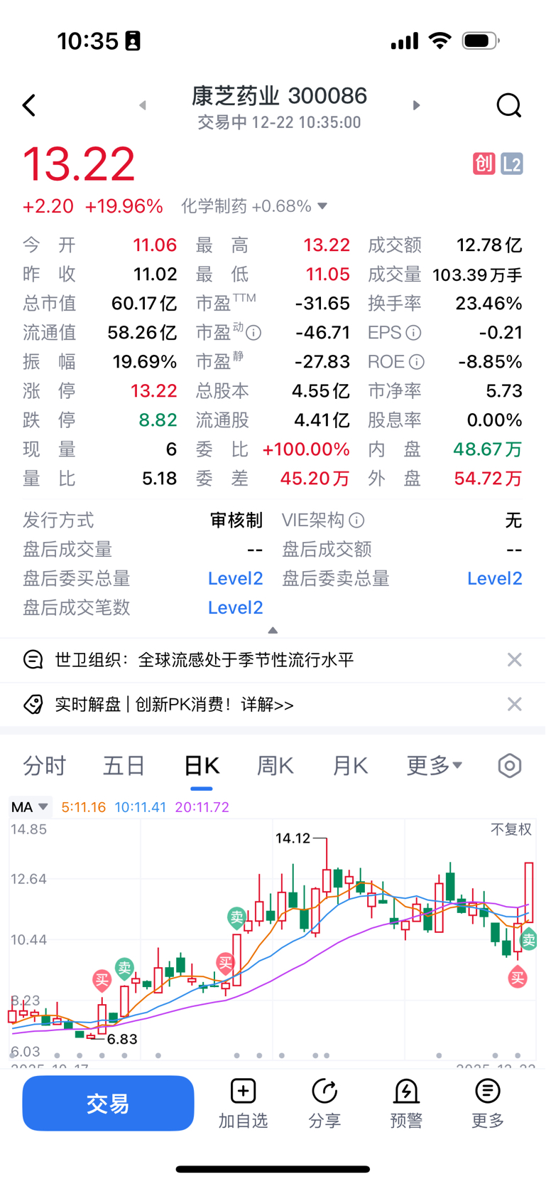 $康芝药业(SZ300086)$ 谢谢主力,炒了3次赚了就跑,每次就1万多股,还挣了七万多,重仓的亏成狗