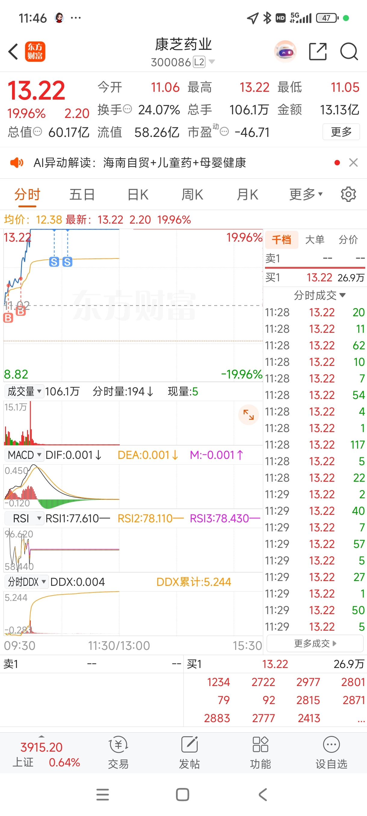 $康芝药业(SZ300086)$ 今天的操作结束 T出的去买了海峡创新 ,看下午了 欧力给