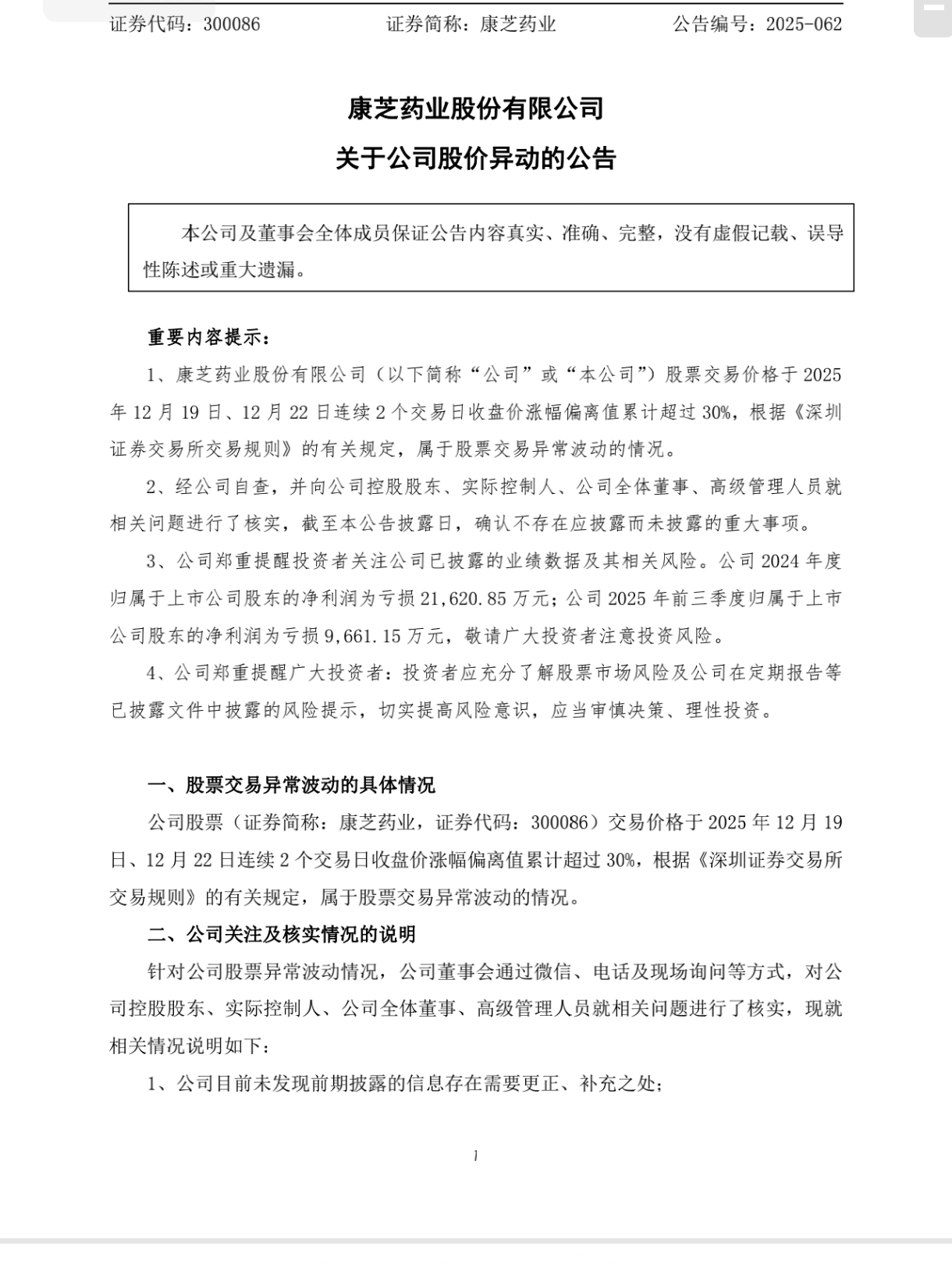$康芝药业(SZ300086)$ 明天快跑,不然跑不掉,出公告了!很危险