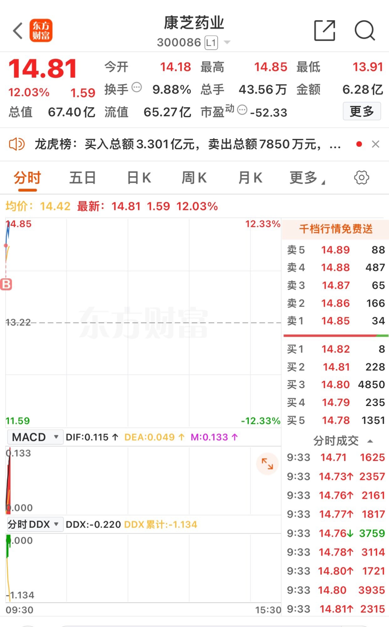 $康芝药业(SZ300086)$ 上车#炒股日记# #强势机会#