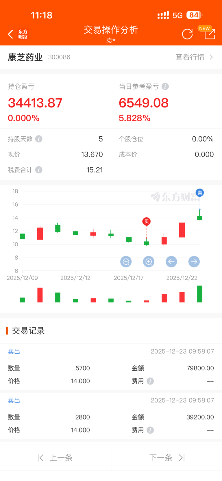 $康芝药业(SZ300086)$ 五天的收益已经满足了,落袋为安才是正道,车上的兄弟吃大肉