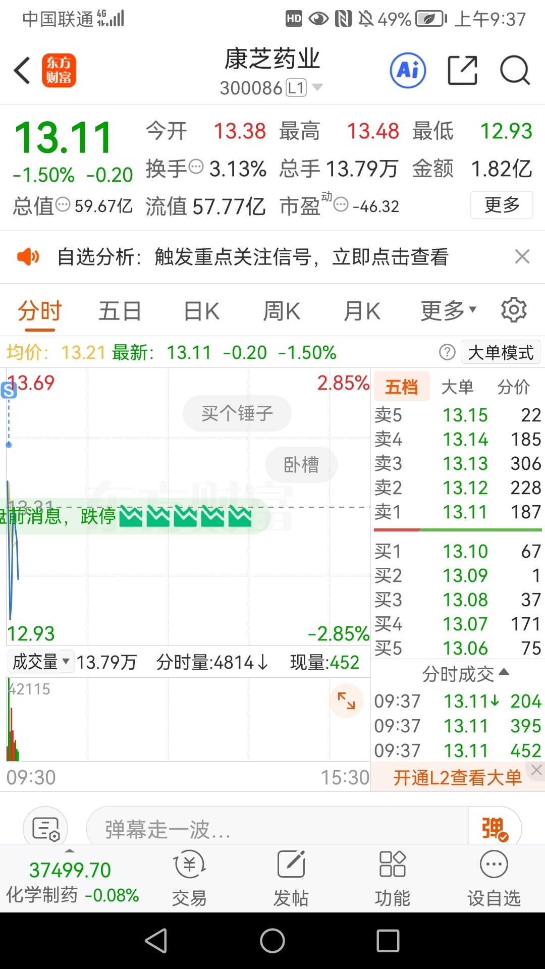 $康芝药业(SZ300086)$ 挂13.48让走了,庄啥意思?