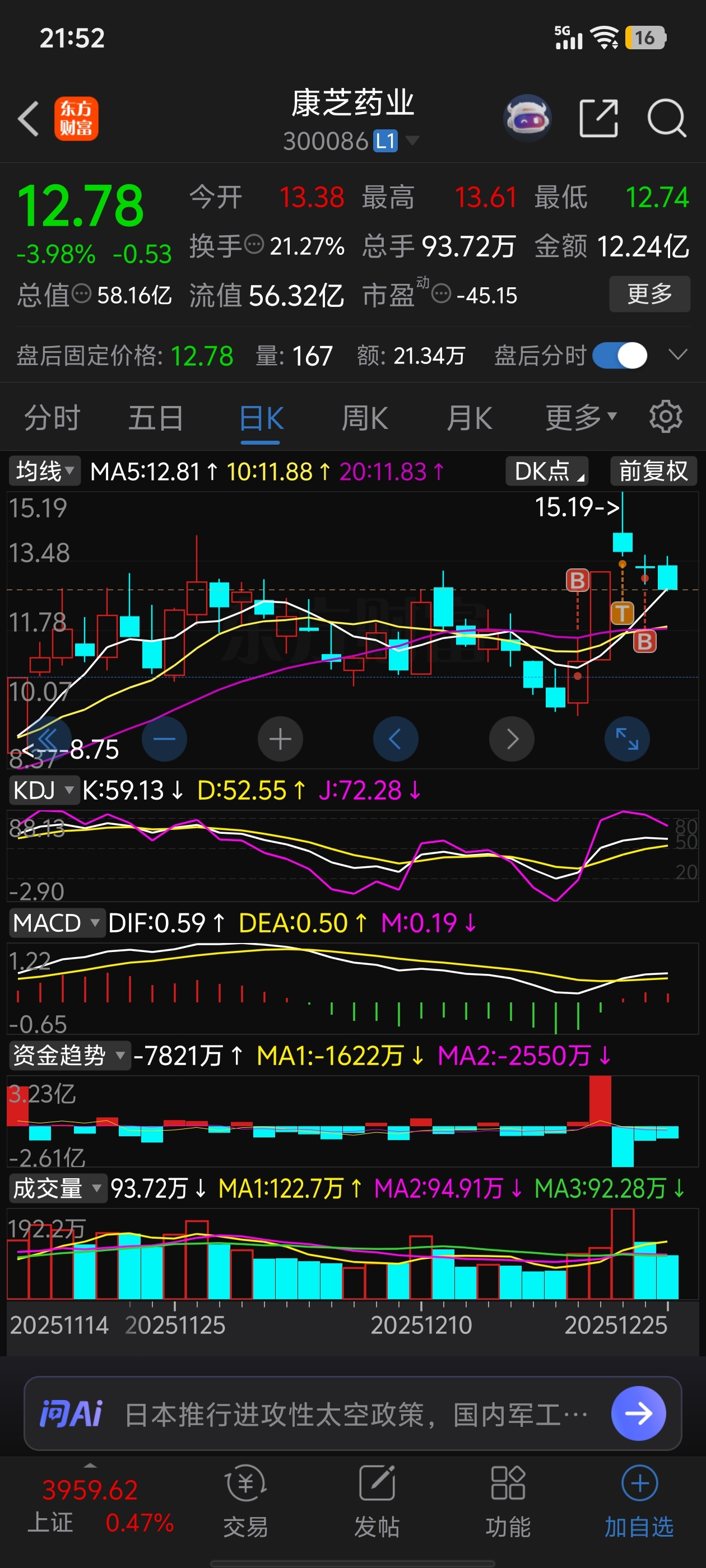$康芝药业(SZ300086)$ 明天不涨,提头来见。