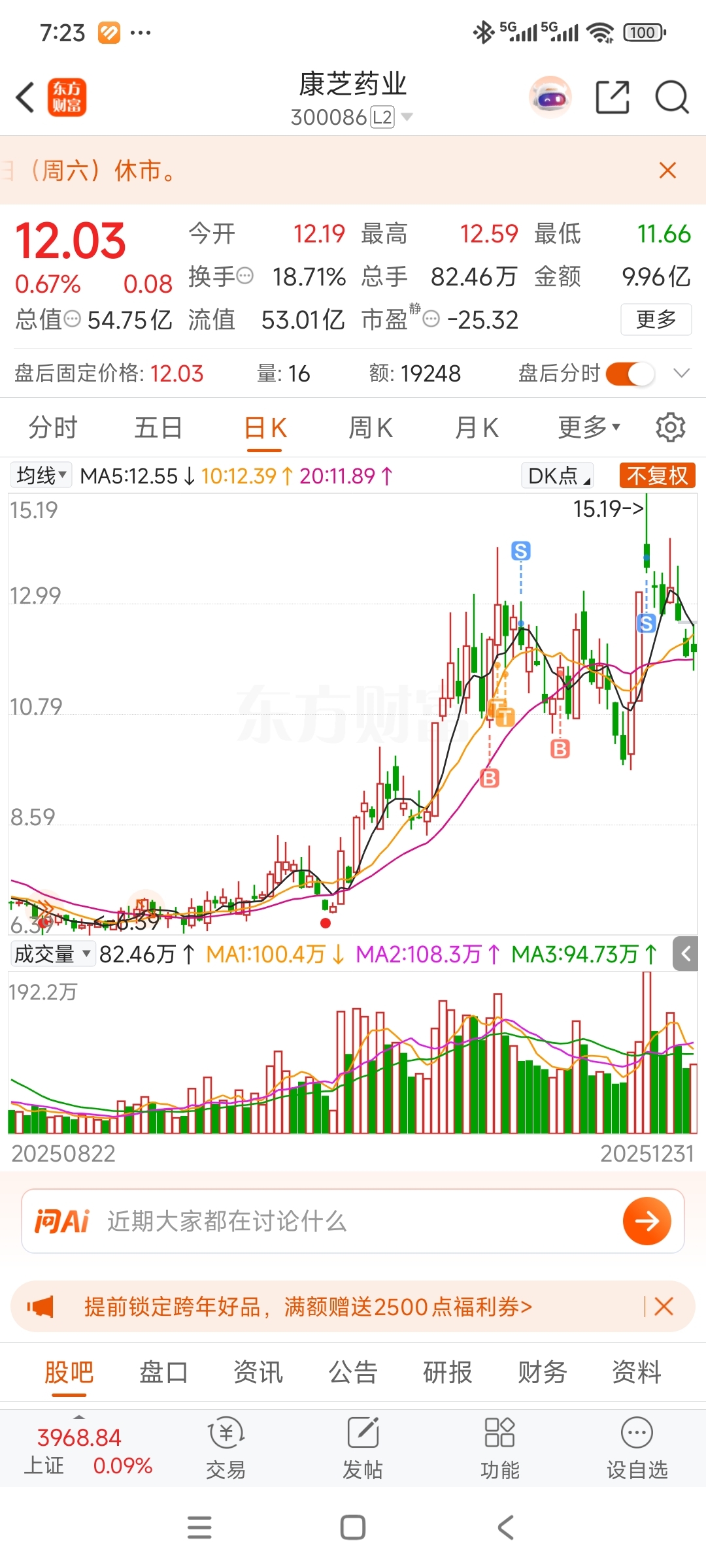 $康芝药业(SZ300086)$ 11.5我再来