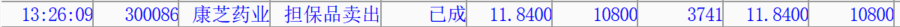 草康芝药业庄家他M,清仓了10800股
