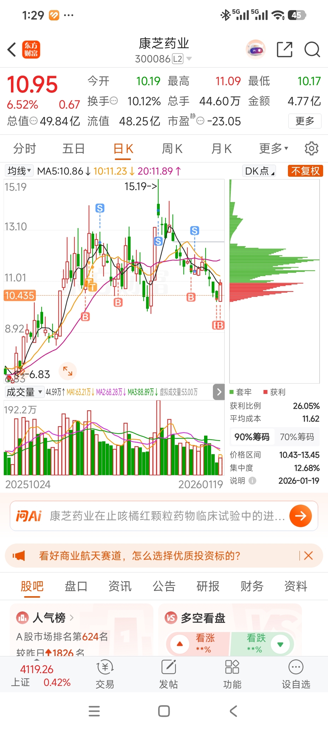 $康芝药业(SZ300086)$ 主力快到碗里来