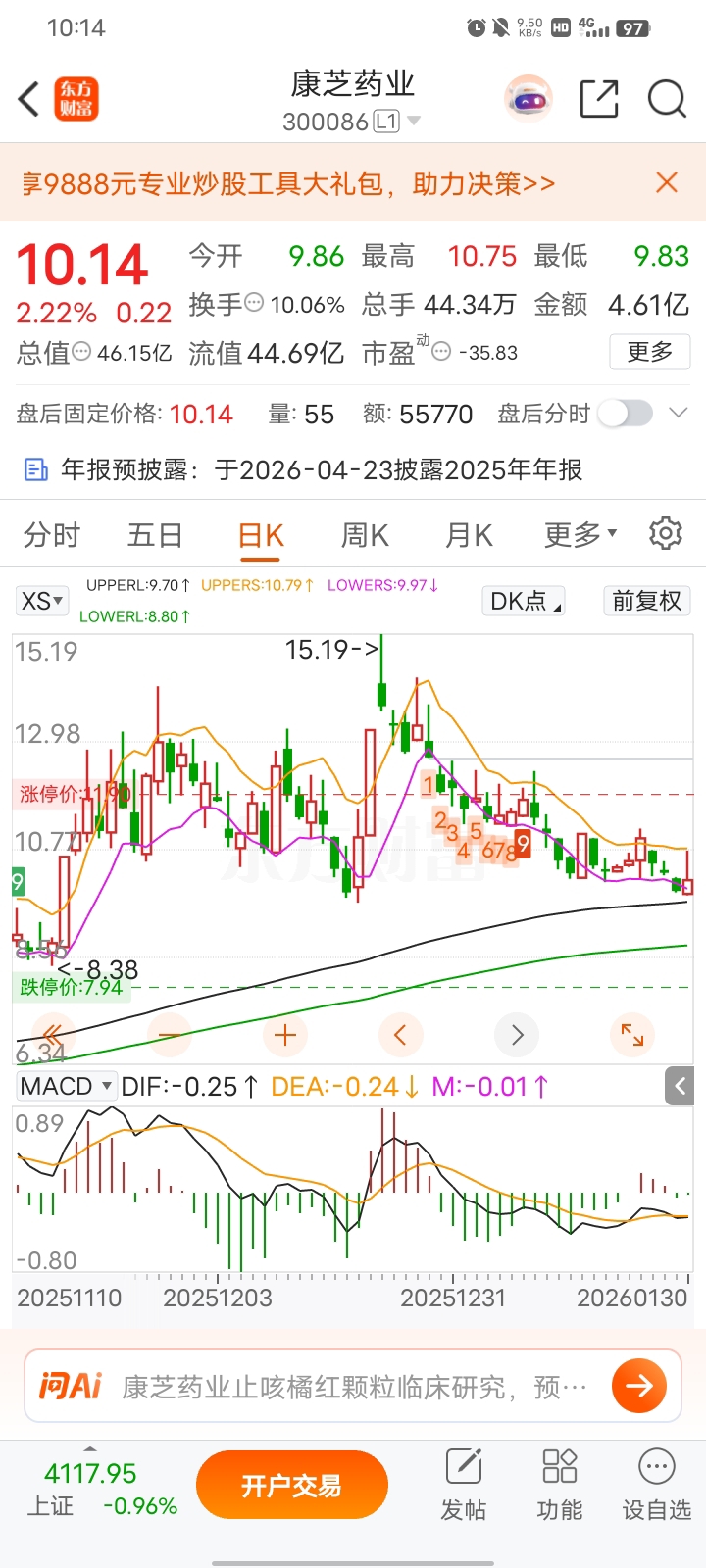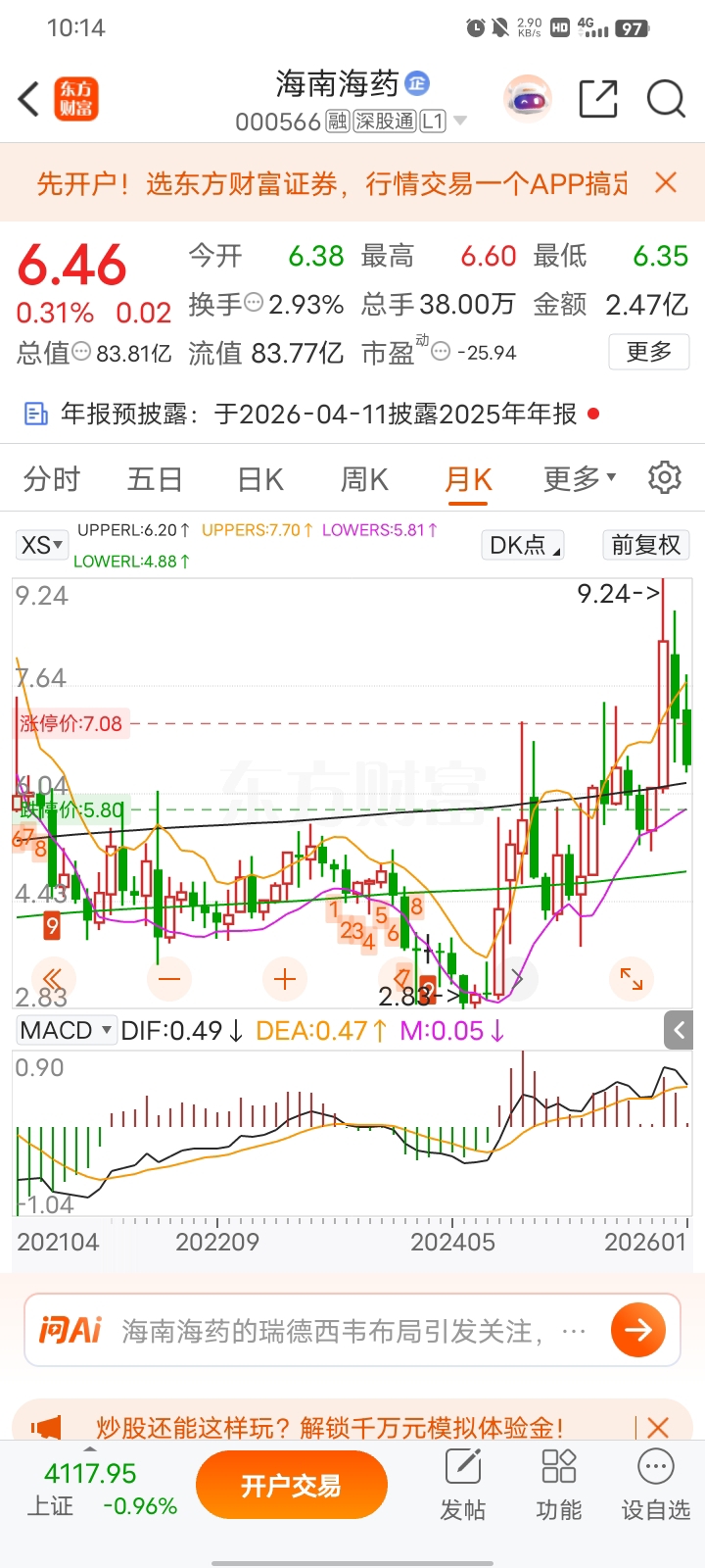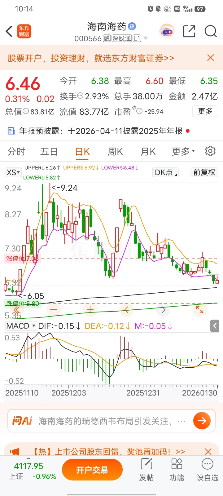$康芝药业(SZ300086)$ 海南海药和康芝支撑