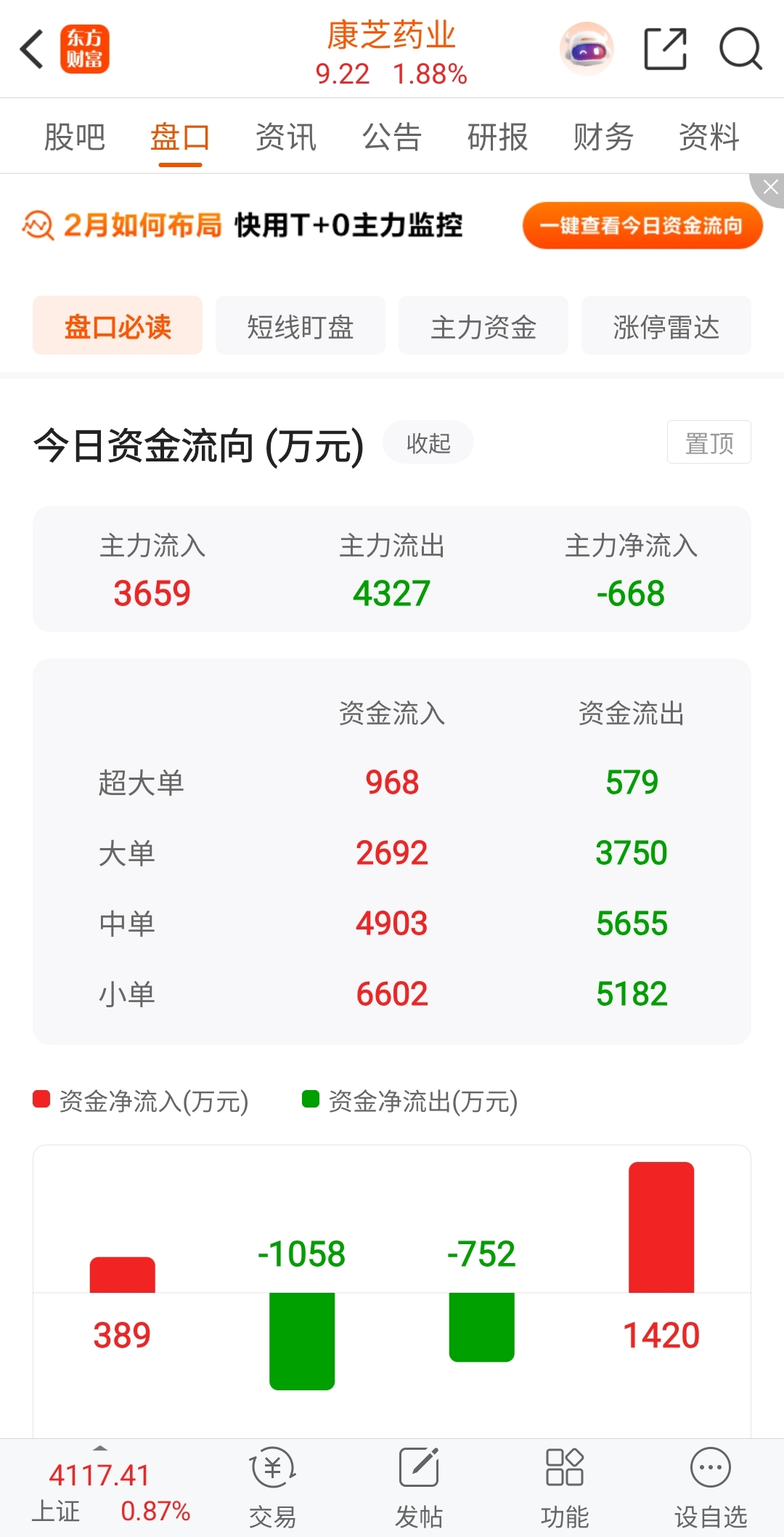 $康芝药业(SZ300086)$ 今天还是流出的!!!