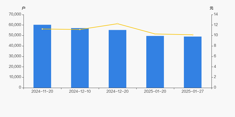 自2024年11月20日以来,公司股东户数连续4期下降,截至目前减幅为18.74%。2024年11月20日至2025年1月27日区间股价下降9.87%。