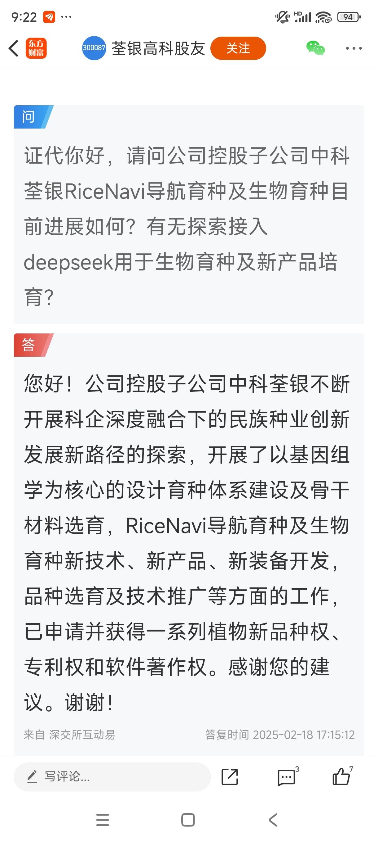 $荃银高科(SZ300087)$ AI育种