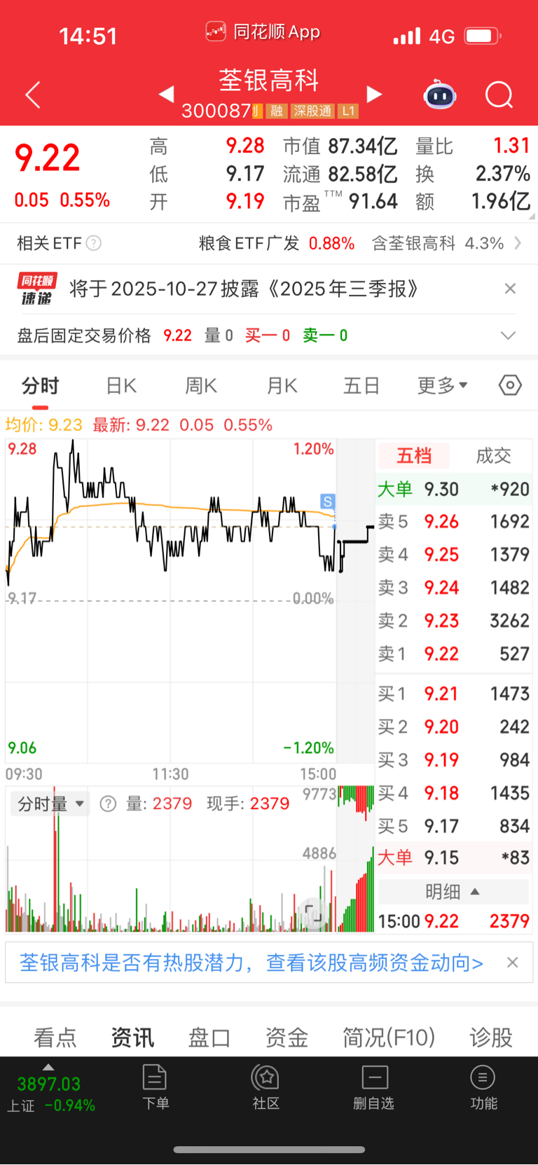 $荃银高科(SZ300087)$ 几个意思,周五刚卖,我是不是追高买回来