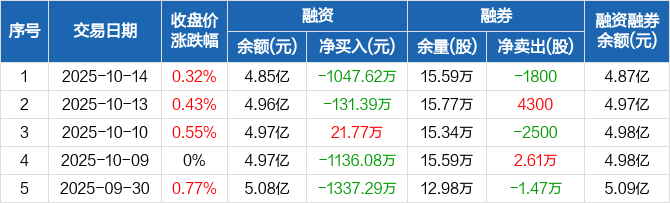 荃银高科:融资净偿还1047.62万元,融资余额4.85亿元(10-14)