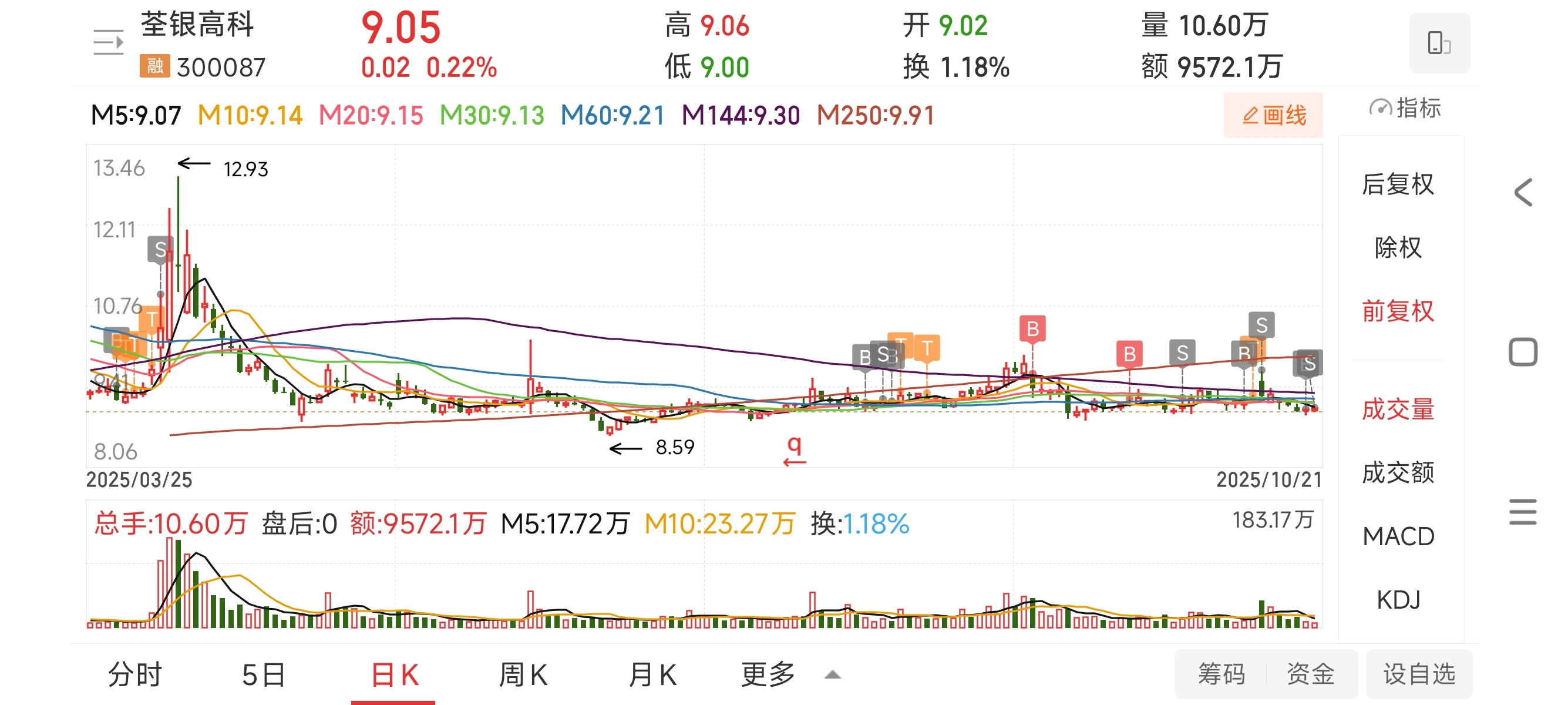 $荃银高科(SZ300087)$ 4.7号,10.13号,都是靠你躲过了大跌,明天还你便是。