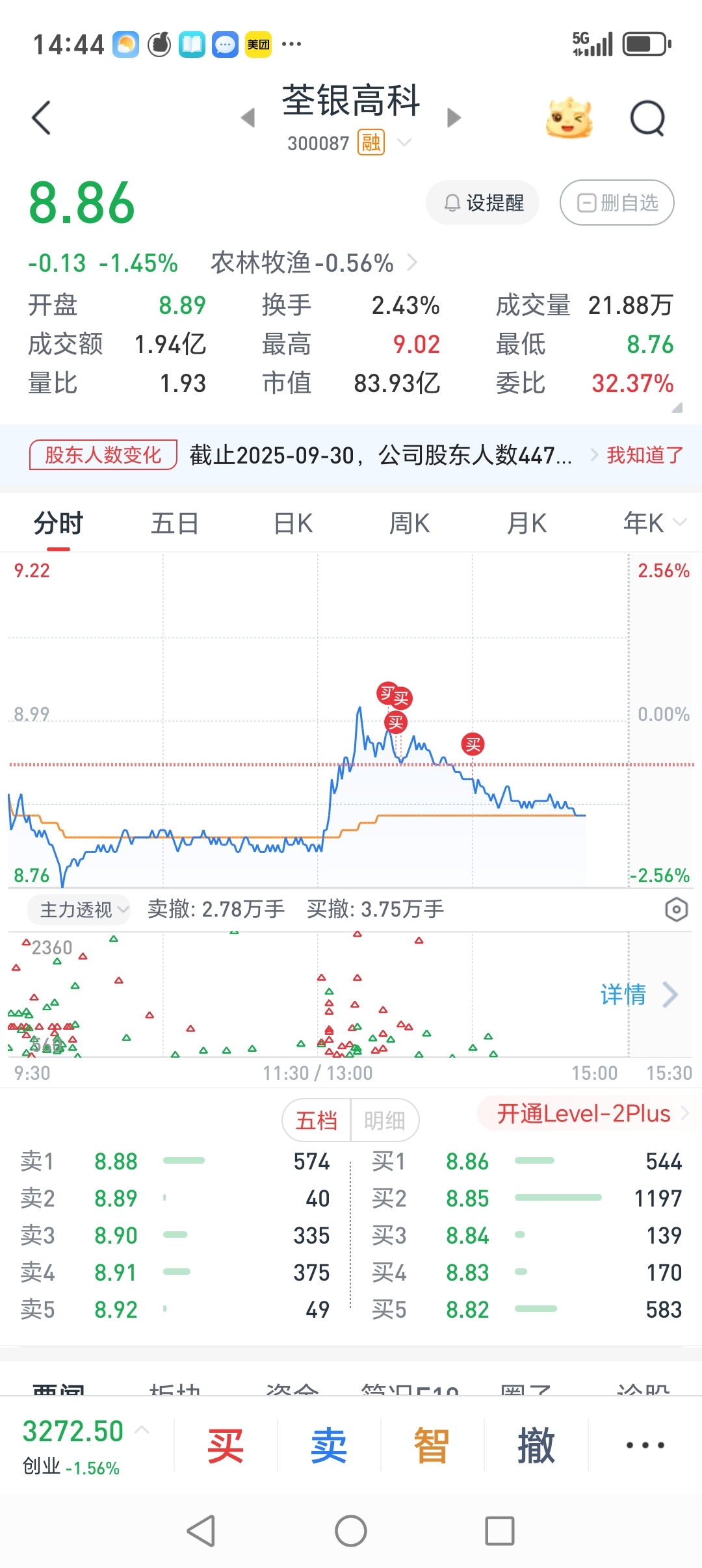 $荃银高科(SZ300087)$  拉高一下。成功把我套进来了?