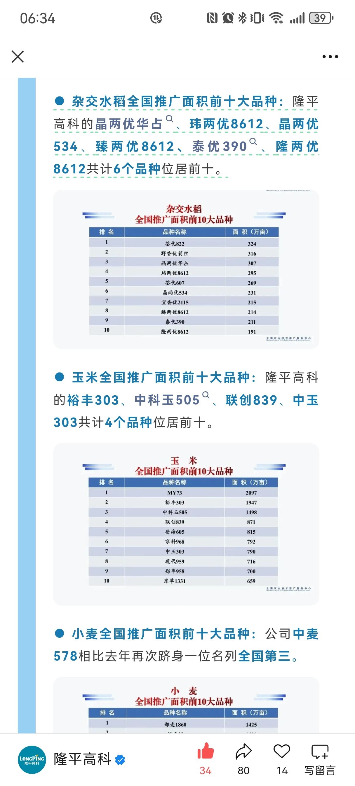 $荃银高科(SZ300087)$ 我知道为什么大新闻不发了,隆平高科更优秀,看图