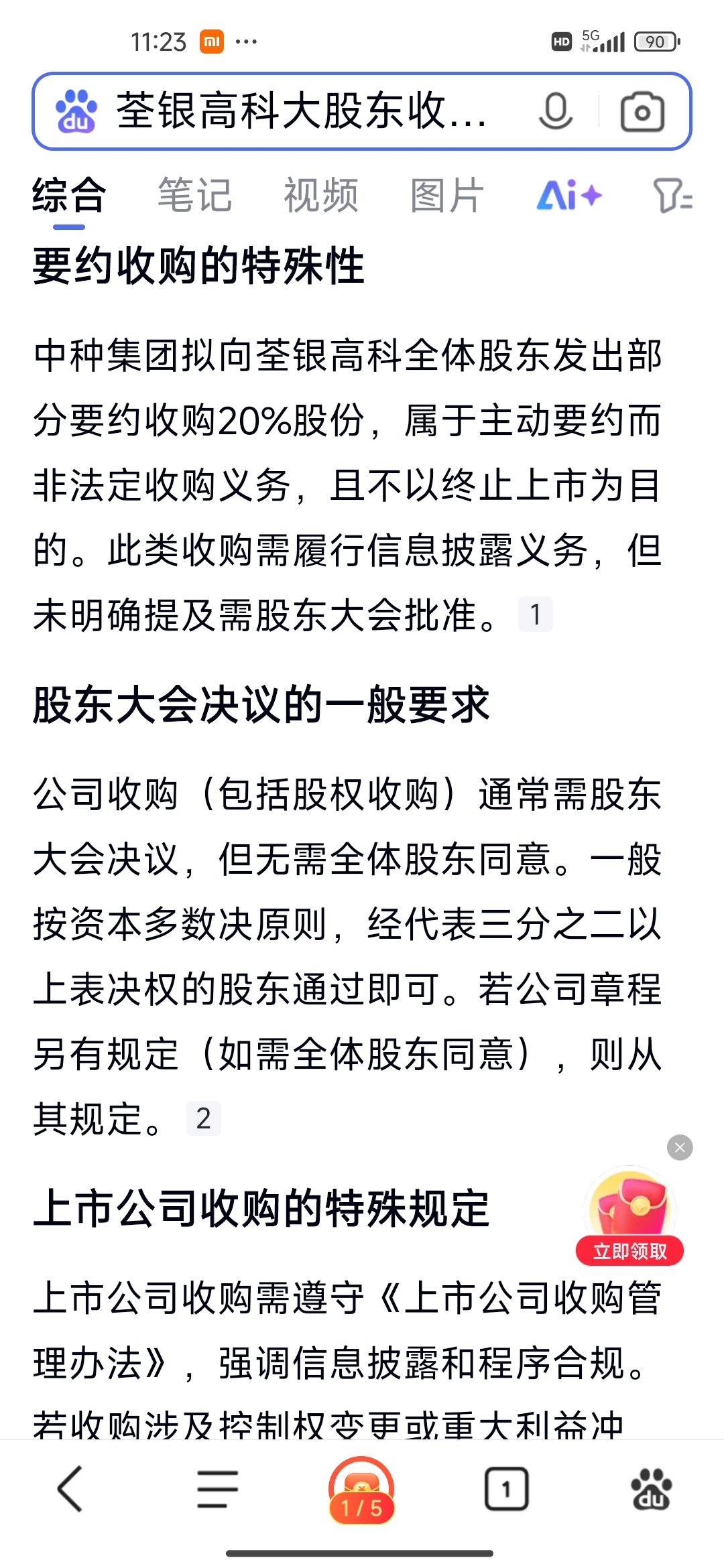 $荃银高科(SZ300087)$ 刚问了公司,大股东收购我们的股份,是不需要股东大会同意。现在11.48元和协议价11.85元的差额,当做是市场对我们持股,的时间成本补偿。希望大股东动作快一点,早日解决内部竞争,甚至是借壳上市。