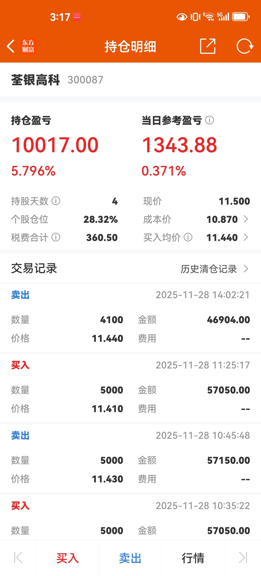 $荃银高科(SZ300087)$ 不装了摊牌了,4天T了1万多,知足常乐,今天做T很失败,t飞了41手,下周继续努力。