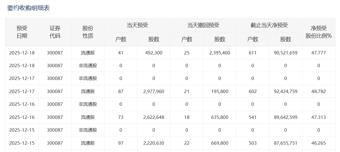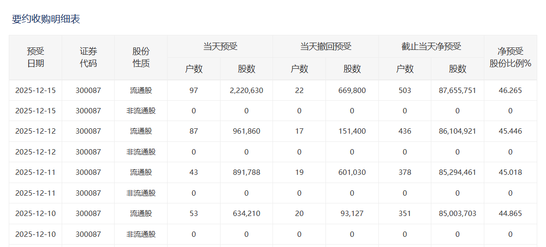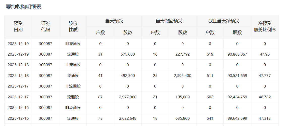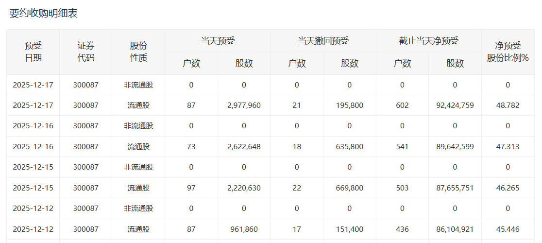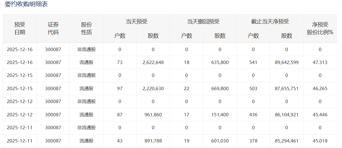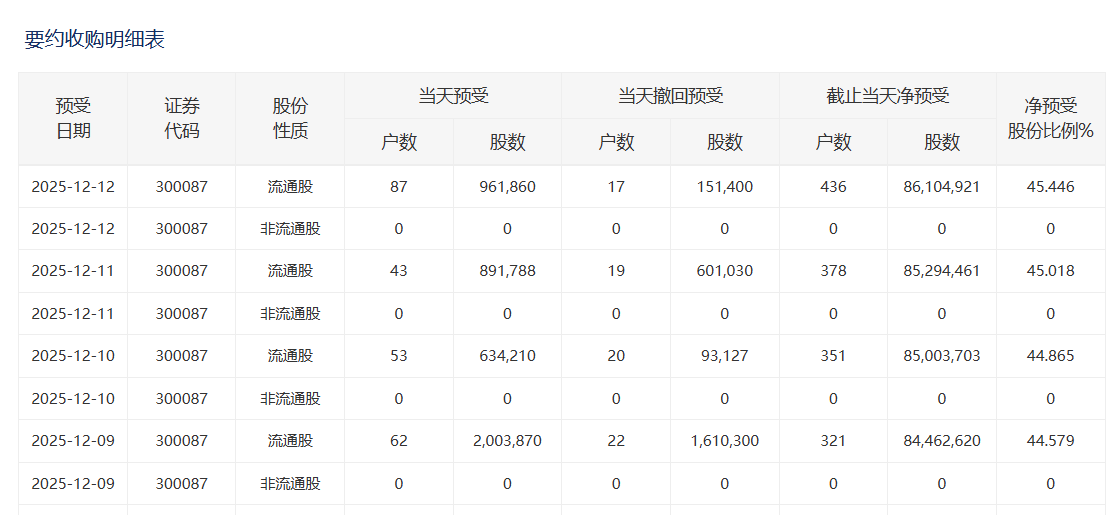 截至12月12日,净预受户数436户、8610.49万股,净预受股份比例为45.446%。
