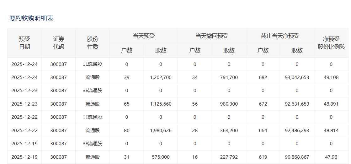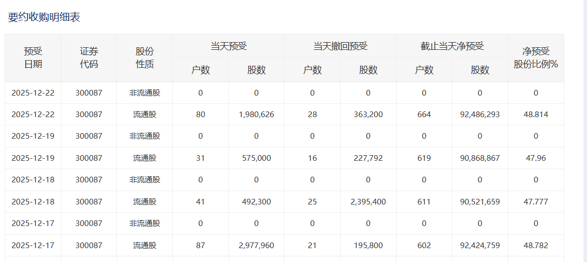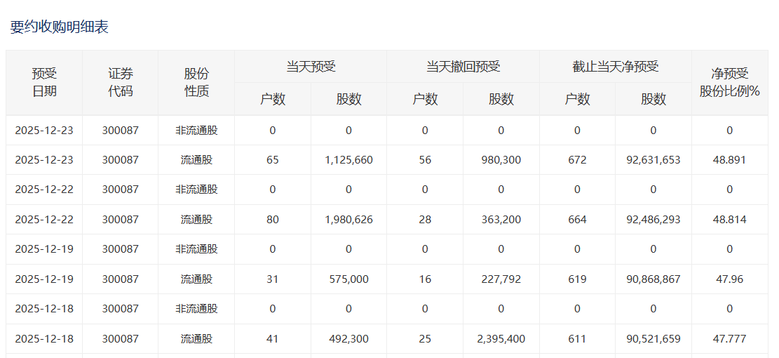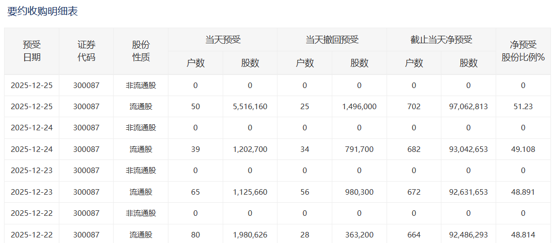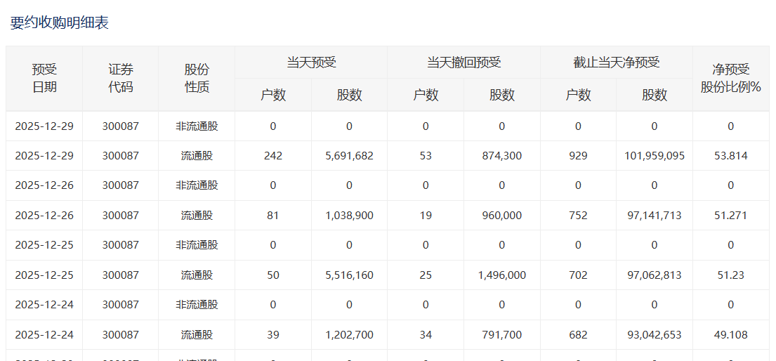 截至12月25日,净预受户数702户、9706.28万股,净预受股份比例为51.23%。