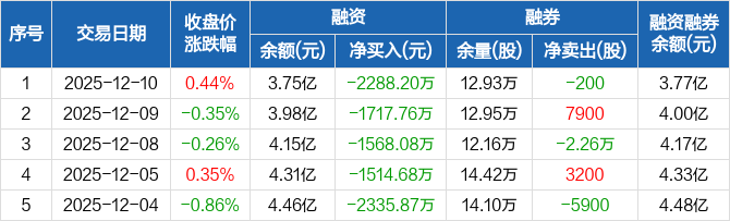 荃银高科:融资余额3.75亿元,创近一年新低(12-10)