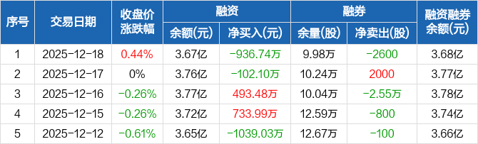 荃银高科:融资净偿还936.74万元,融资余额3.67亿元(12-18)