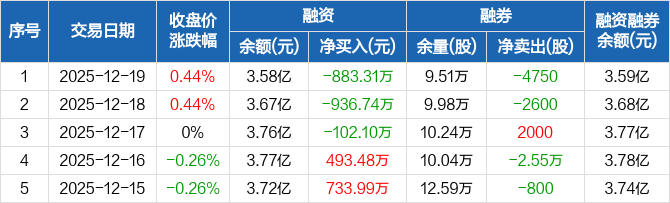 荃银高科:融资余额3.58亿元,创近一年新低(12-19)
