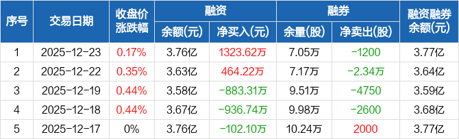 荃银高科:融资净买入1323.62万元,融资余额3.76亿元(12-23)
