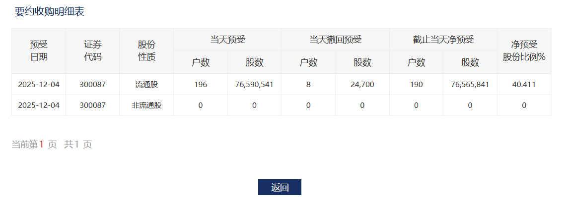 12月4日预受期首日,当天预受户数196户、股数7659.05万股,撤回8户、2.47万股,净预受户数190户、7656.58万股,净预受股份比例为40.411%,估计贾王二人的7435万股已申报预受,其他股东申报的也就200多万股。