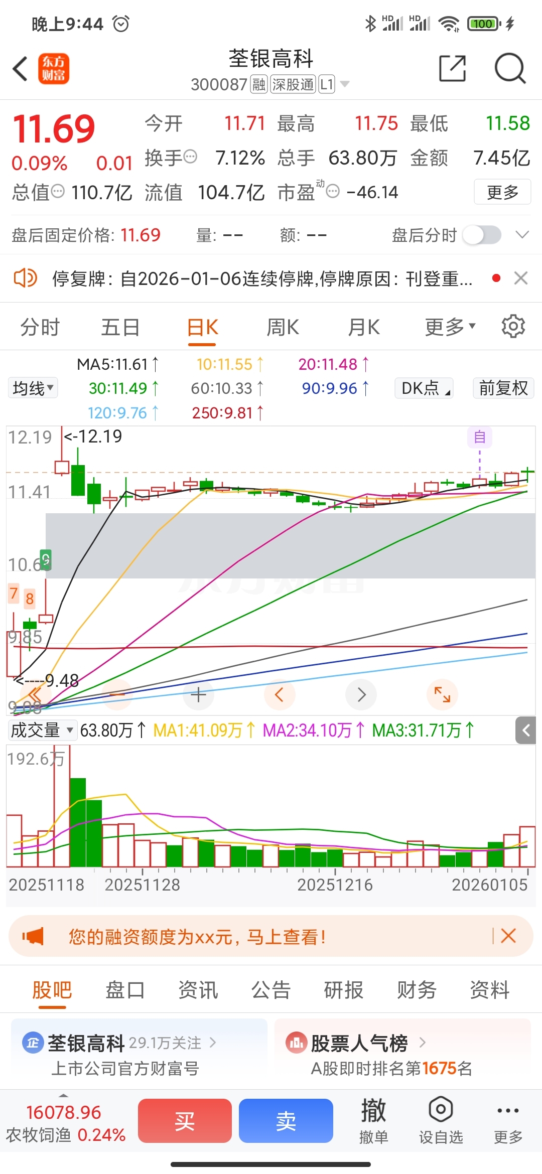 $荃银高科(SZ300087)$ 终于出公告了,难为主力了