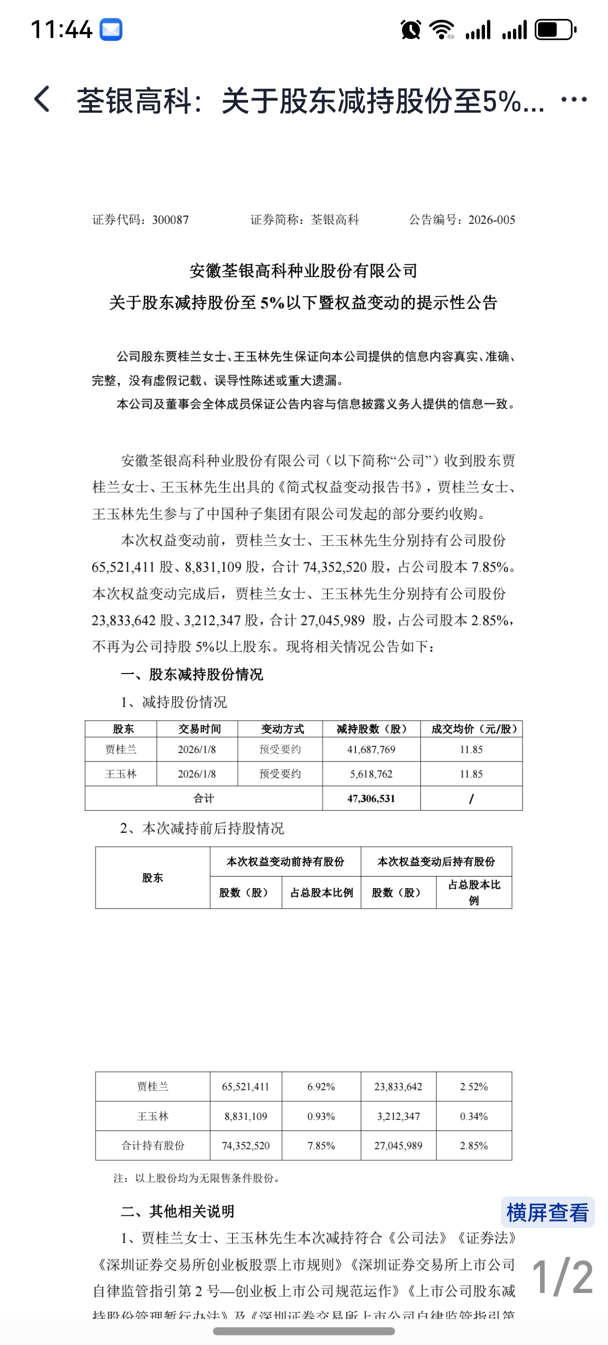 贾桂兰和王玉林也参与了要约收购,要约掉了其5.00%(占总股本)。大家注意是不多