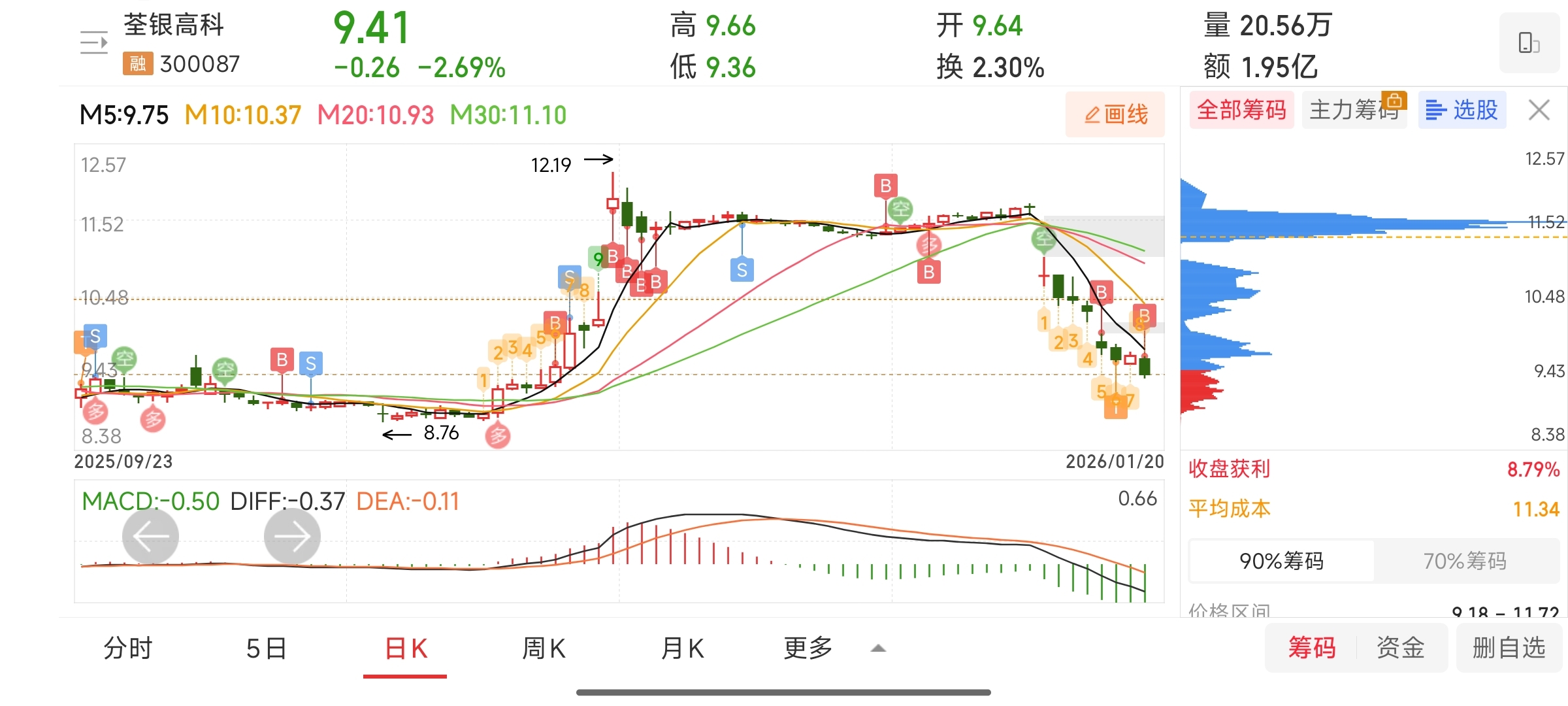 $荃银高科(SZ300087)$ 本来只差一千多回本的