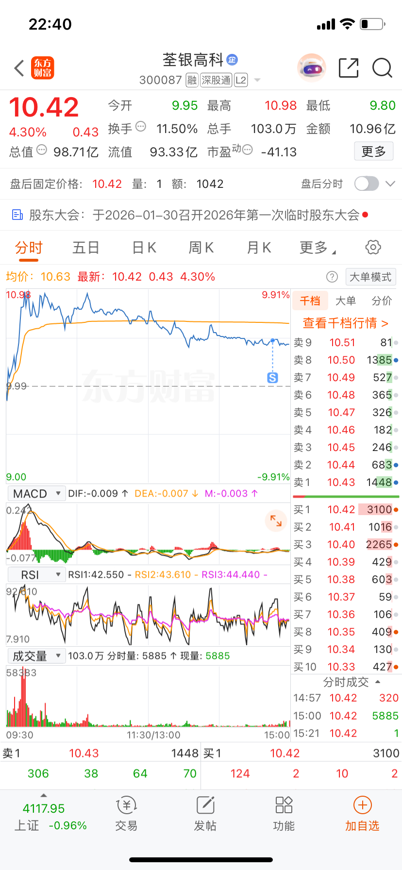 $荃银高科(SZ300087)$ 幸亏今天尾盘卖了