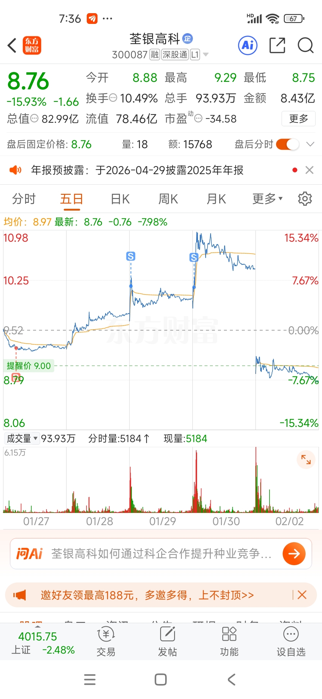 $荃银高科(SZ300087)$ 今天看清仓对了?