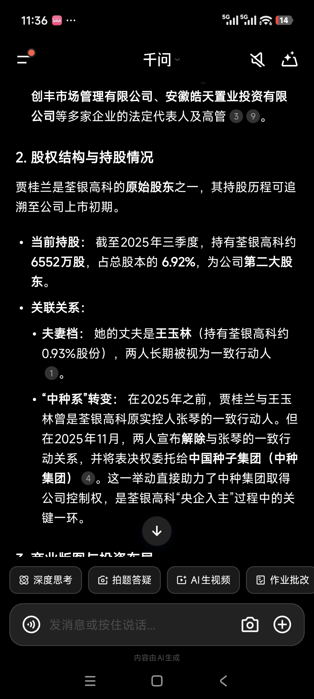$荃银高科(SZ300087)$ 贾桂兰阿姨,公司的第二大股东,元老级战略投资家,才是改变公司命运的胜负手! 大家的股票之所以还值钱,得感谢贾阿姨给我们引入央企-中种集团! 否极泰来! 加油,2026!加油,荃银高科!