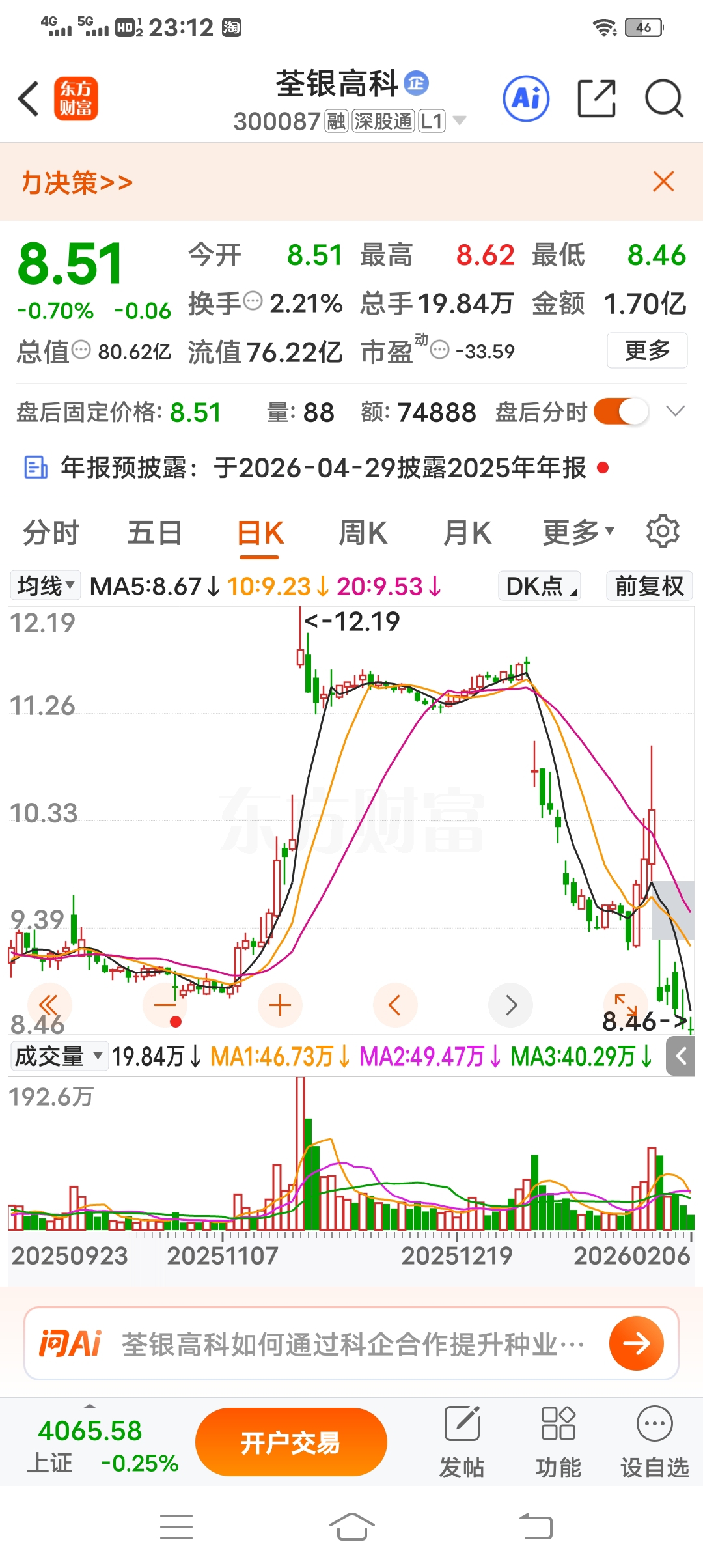 $荃银高科(SZ300087)$ 全股市找不出这么lj的k线图来