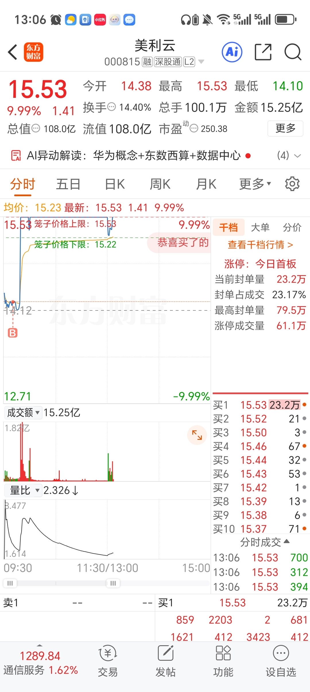 卖了这个砸总换成美丽云和数据港,感觉到了牛市!