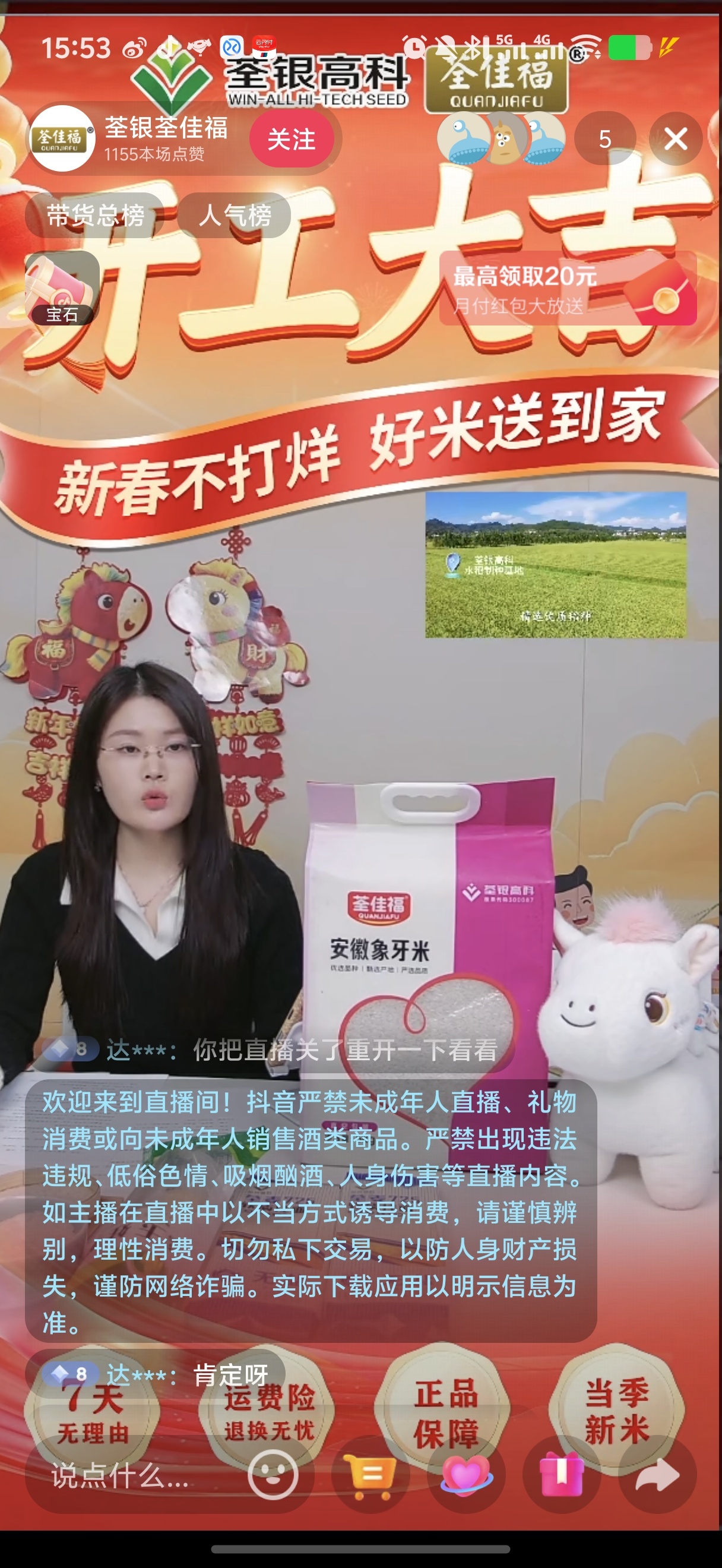 $荃银高科(SZ300087)$ 各位股东 今天不买两袋米吗? 报我名有优惠
