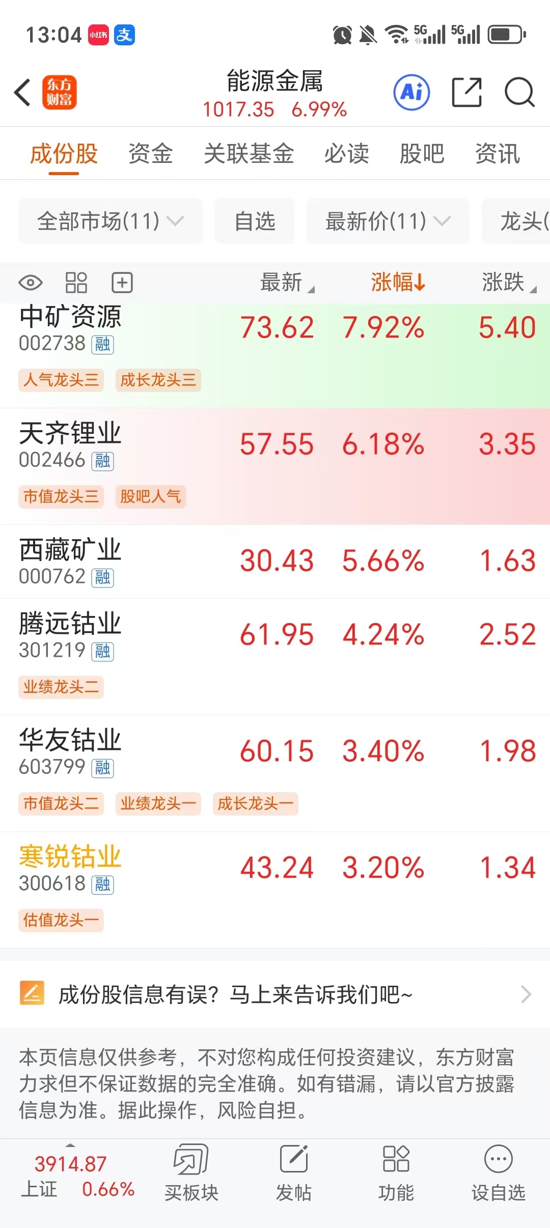 大A起飞带不动你,我买的都是跑输板块的,买的钴也是倒数第一,哪怕板块快涨停了,都