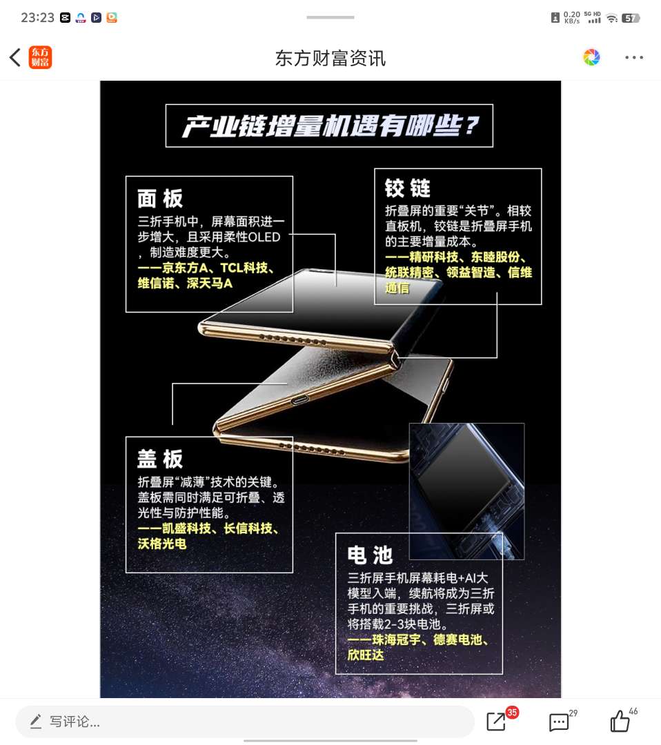 随着蛇年的长信稳定成长数钱就如同滴水管道源远流长,大盘五千多只股票,能数得出合作共赢的华为、苹果、特斯拉等没几只,可股价现一美元不到对比十多年前将近腰斩、腰斩、再腰斩,与小米加步枪2010年11月22日的61元股价背道而驰,只许愿不承诺填权之路那么的漫长,不看僧面看佛面长信科技称兄道弟供货的华为,发布全球首款三折叠屏手机Mate XT。Mate XT作为全球首个三折叠手机,开启三折叠屏手机的崭新时代。折叠屏插上AI翅膀,应用前景进一步拓宽。全球折叠屏手机出货量将从2022年的1310万台增至2027年的1亿台,2022—2027年CAGR达50.6%。而中国已成为全球最大折叠屏市场。展望未来,在AI大模型和三折叠等创新形态的合力加持下,叠加良品率的提升和价格的下探,折叠屏手机整体渗透率有望快速增长,相关材料及其配套加工工艺的持续迭代,长信科技高瞻远瞩为打赢率先响应,“积极支持符合条件的境内企业赴境外上市,更好利用两个市场、两种资源;将继续拓展与境外市场互联互通,吸引全球中长期投资!首发第一站落地越南投建分公司,高瞻远瞩相当于给境外上市打前哨功不可没,全面注册制的今天想在股市持久生存,不能追涨杀跌再炒闪电式题材概念以及黑五类股,有新国九条指引长信科技千载难逢走牛市行情,像长信科技十八般武艺题材概念一身,从没抱怨过股价如同垃圾股,这样高科技成长股,客户群体是国内上市企业中最优秀的,这次走出中国去越南建厂,是走向国际化大企业的第一步,长信科技龙年单申报专利就有如下9项之多