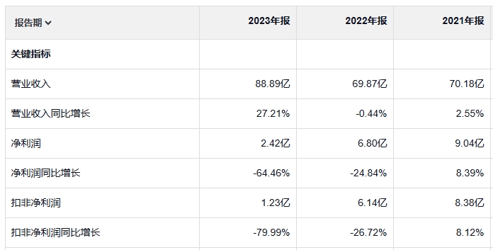 回看过往业绩,2021年~2023年,长信科技整体营收增速波动变化。因受全球消费电子需求疲软,手机、平板出货量下滑等影响,以及面板行业周期性调整影响,公司2022年营收同比增速降为负,2023年有所好转。