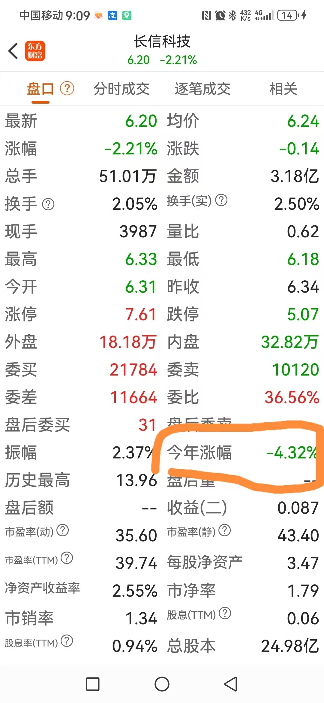 热烈祝贺长信科技在今年这波大牛市当中一分钱不涨还倒跌一4.32%真是可喜可贺。