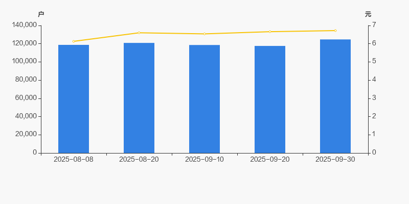 2025年8月8日至今,公司股东户数有所增长,区间涨幅为5.03%。2025年8月8日至2025年9月30日区间股价上涨9.62%。