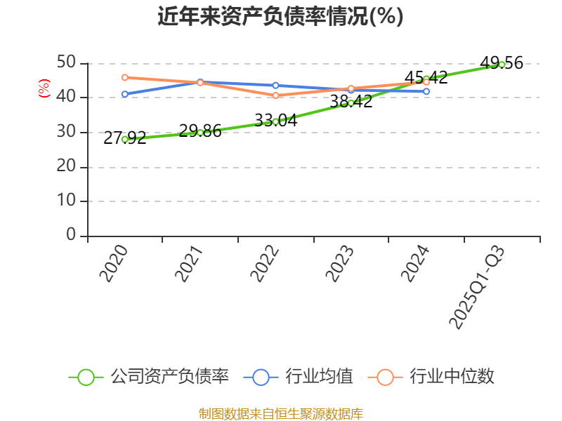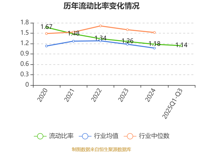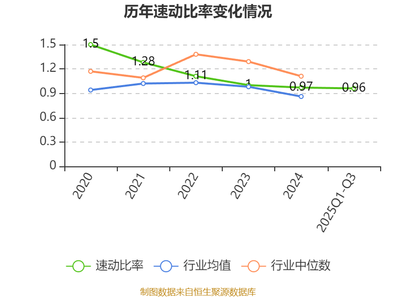 2025年前三季度,公司流动比率为1.14,速动比率为0.96。