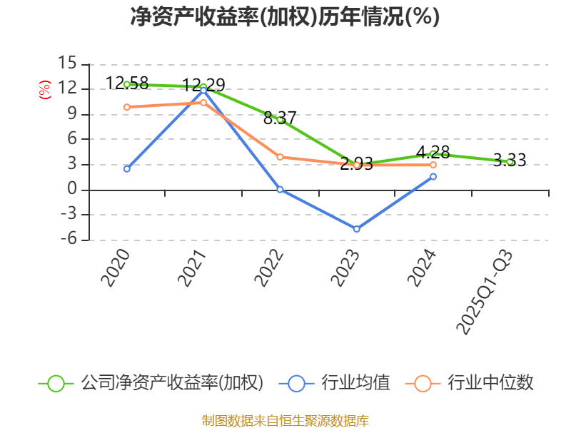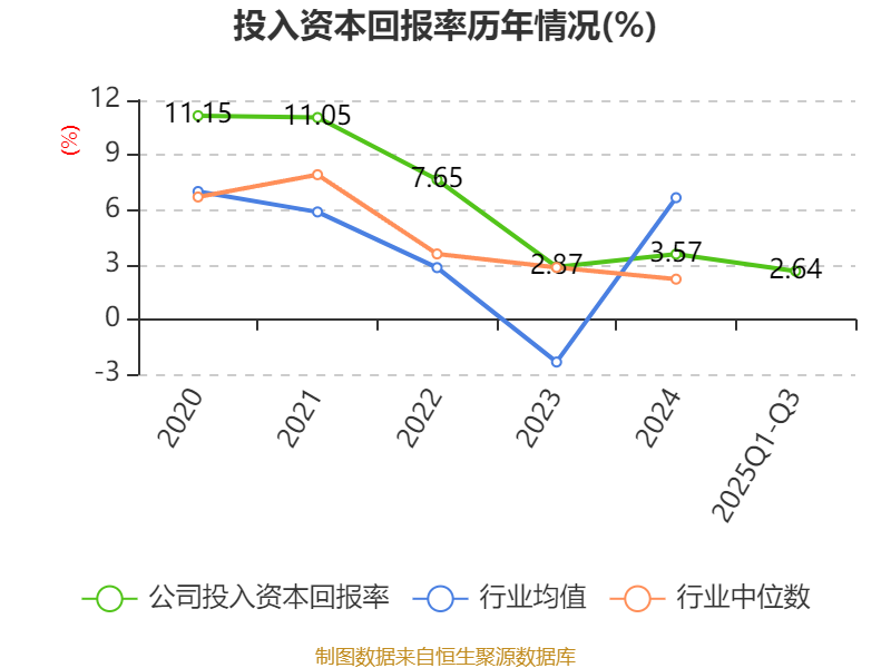盈利能力方面, 2025年前三季度公司加权平均净资产收益率为3.33%,同比下降0.18个百分点。公司2025年前三季度投入资本回报率为2.64%,较上年同期下降0.44个百分点。