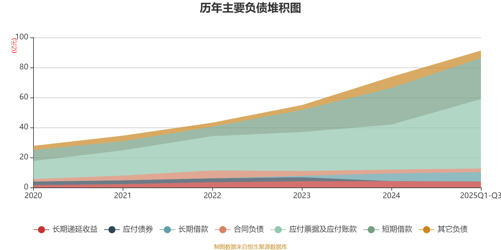 负债重大变化方面,截至2025年三季度末,公司应付票据及应付账款较上年末增加54.23%,占公司总资产比重上升6.65个百分点;其他流动负债较上年末减少71.33%,占公司总资产比重下降0.7个百分点;一年内到期的非流动负债较上年末减少26.49%,占公司总资产比重下降0.62个百分点;长期递延收益较上年末减少6.78%,占公司总资产比重下降0.46个百分点。