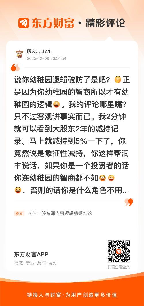 。我的评论哪里嘴?只不过客观讲事实而已。我2分钟就可以看到大股东2年的减持记录。马上就减持到5%一下了,你竟然说是象征性减持,你这样帮润丰说话,如果你是一个投资者的话你连幼稚园的智商都不如