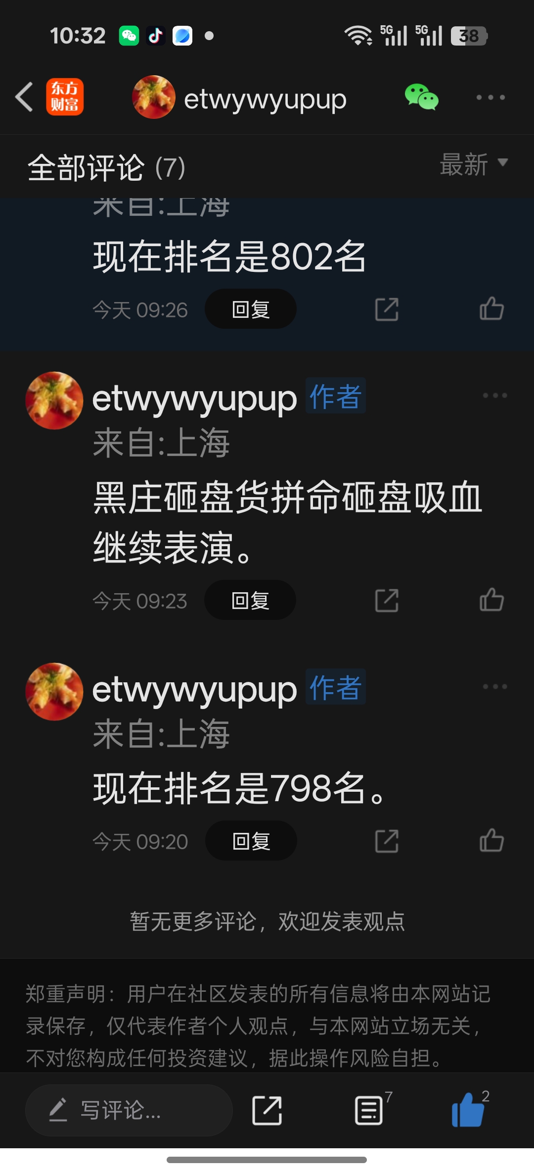 温馨提示: 1.根据《证券法》规定,禁止编造、传播虚假信息或者误导性信息,扰乱证券市场;2.用户在本社区发表的所有资料、言论等仅代表个人观点,与本网站立场无关,不对您构成任何投资建议。用户应基于自己的独立判断,自行决定证券投资并承担相应风险。《东方财富社区管理规定》