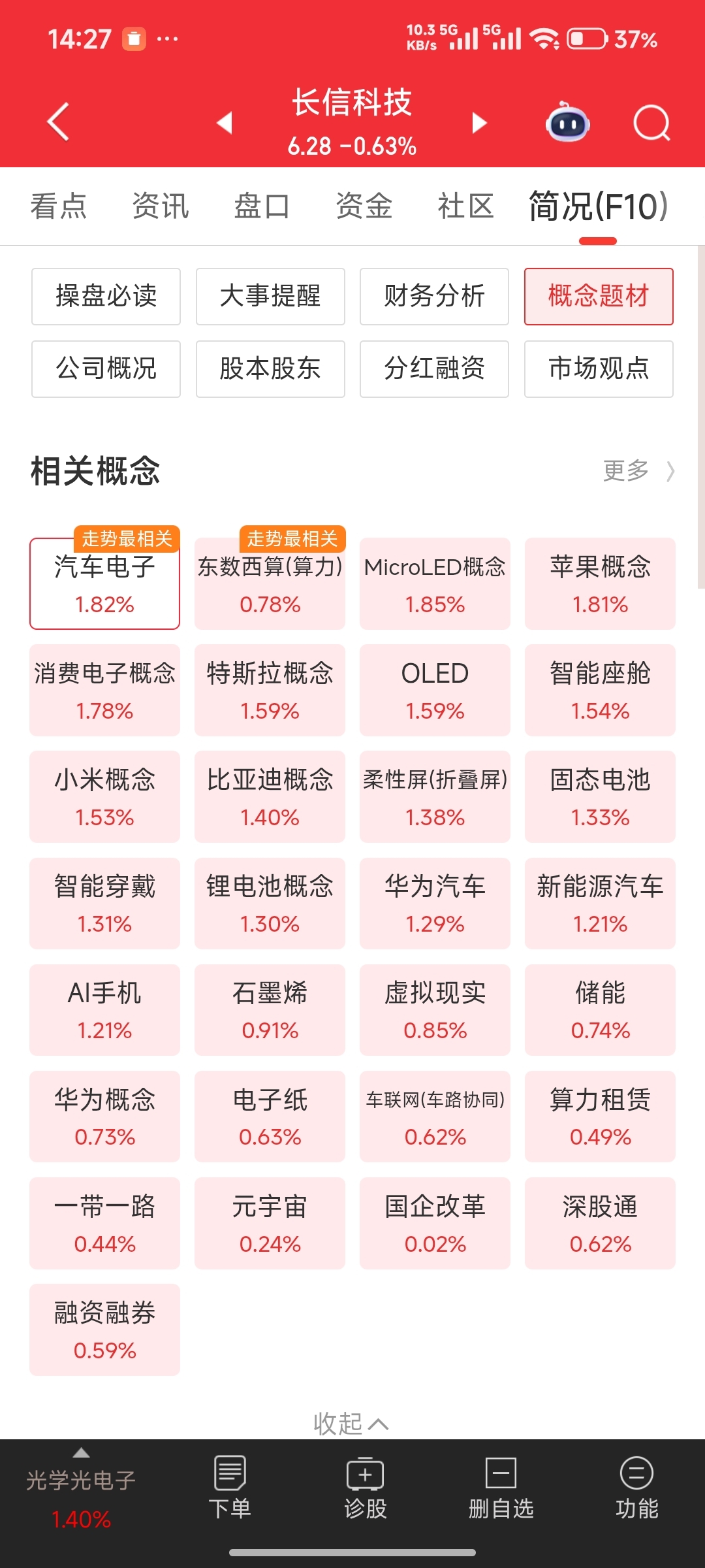 $长信科技(SZ300088)$ 相关概念全红,它是绿的