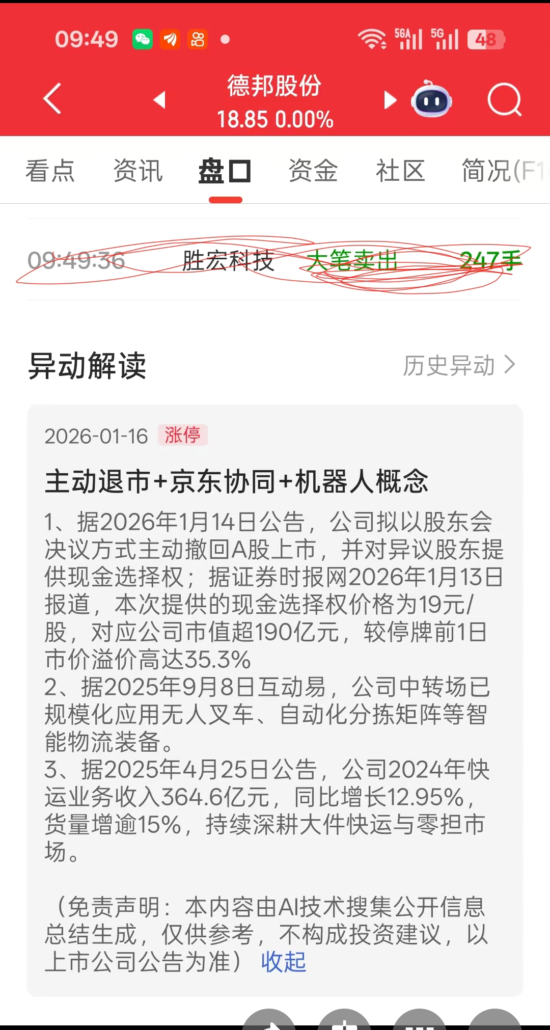 $长信科技(SZ300088)$ 看看德邦股份退市前连续拉3个涨停板